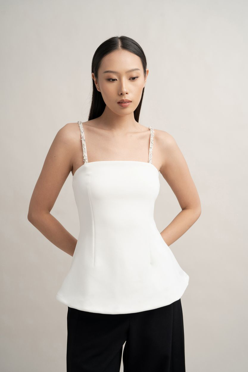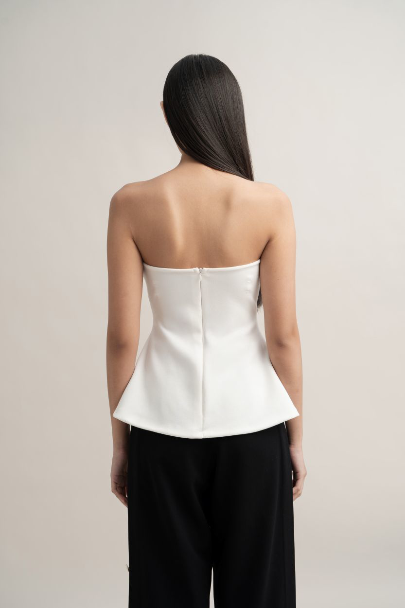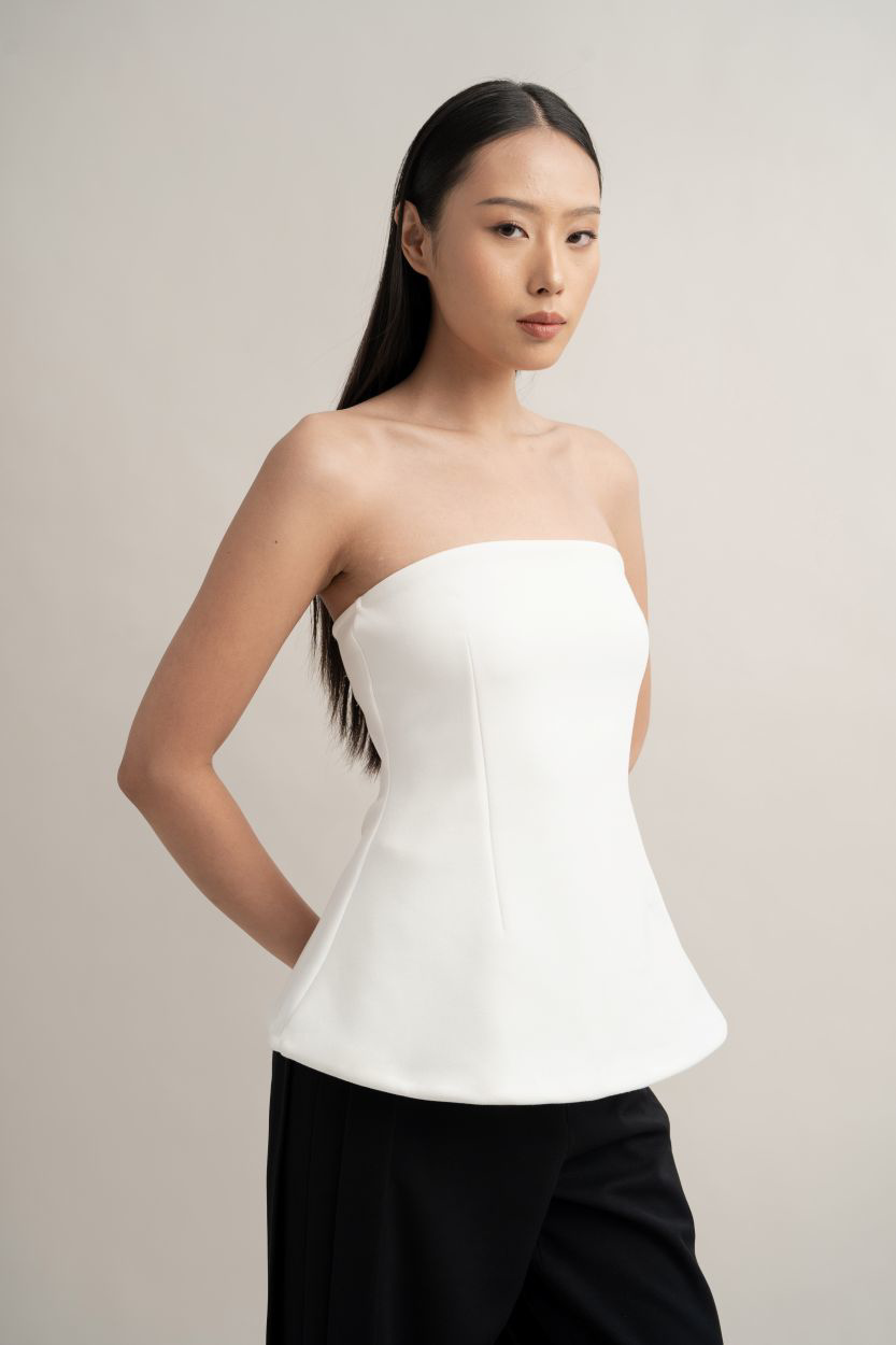 Material: Modura Active Cotton Strapless top with back zipper that is designed with a structured silhouetteaccentuates the waist and gently flares at the hem can be paired with our selection of optional strapscomes in black and white