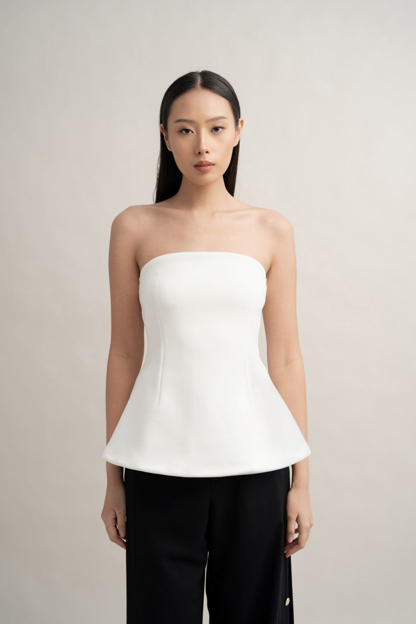 Material: Modura Active Cotton Strapless top with back zipper that is designed with a structured silhouetteaccentuates the waist and gently flares at the hem can be paired with our selection of optional strapscomes in black and white
