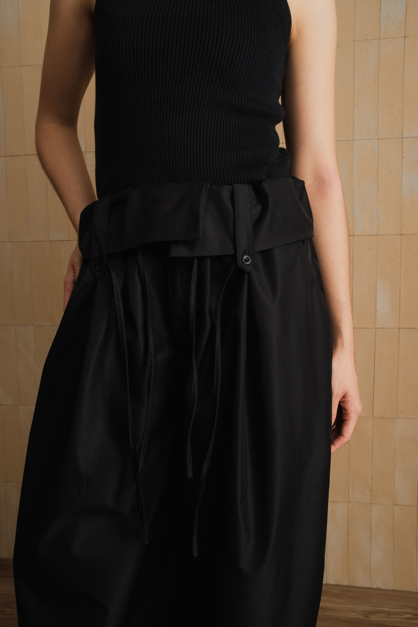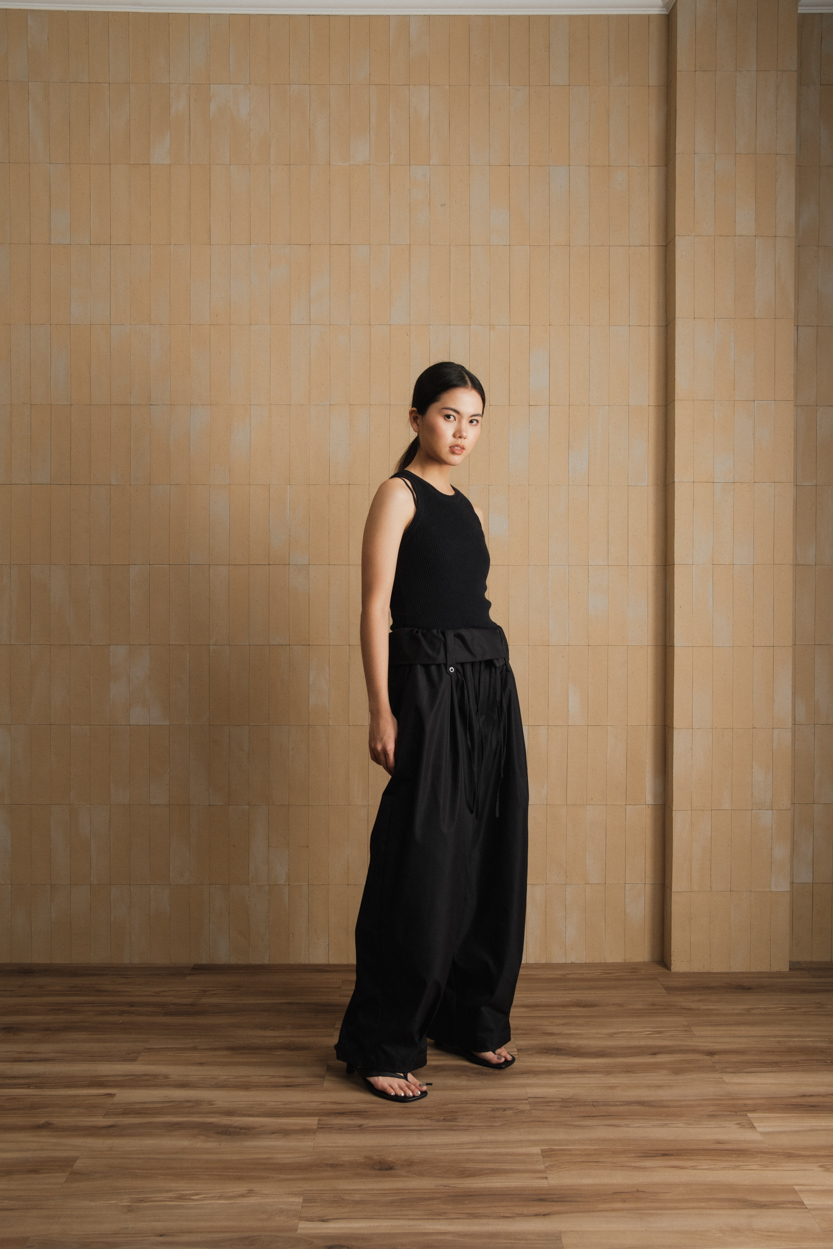 Size (in cm):XS: waist 64-72 | hips 100 | length 100 | rise 33S: waist 68-76 | hips 104 | length 102 | rise 34M: waist 72-80 | hips 108 | length 104 | rise 35L: waist 76-84 | hips 112 | length 106 | rise 36 Model is 168 cm Dry clean or hand washed