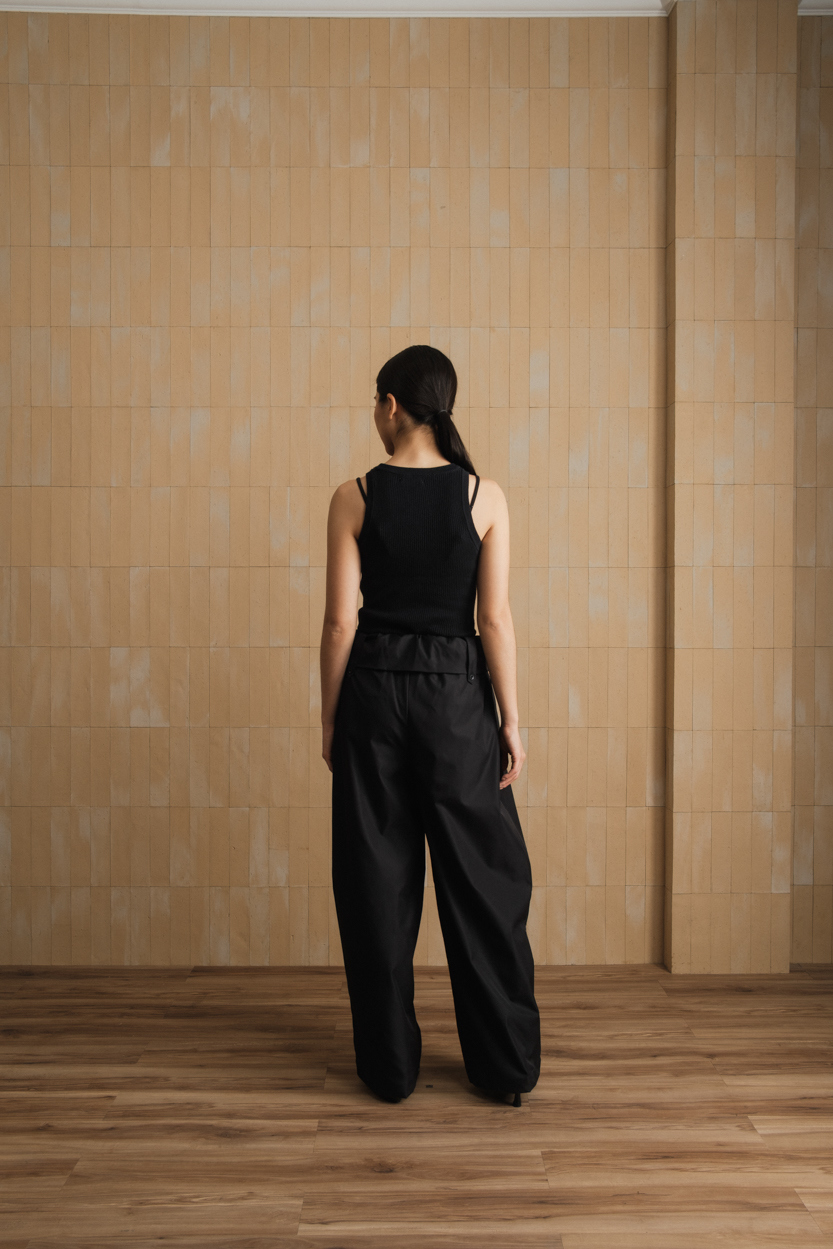 Material: Athena Stretch High-waisted wide-leg pants, designed with a flattering structured waistbandand subtle pleated detailing
