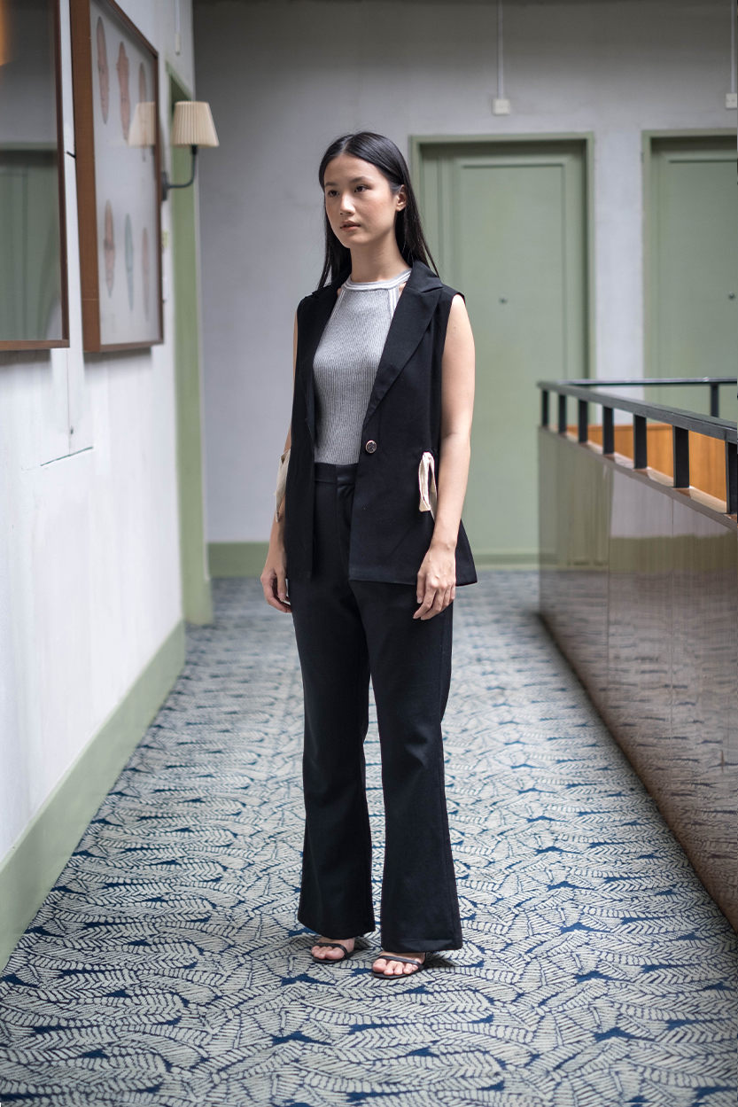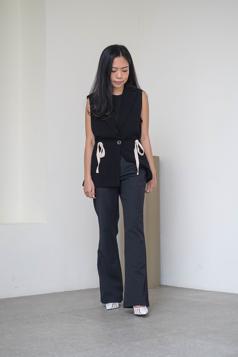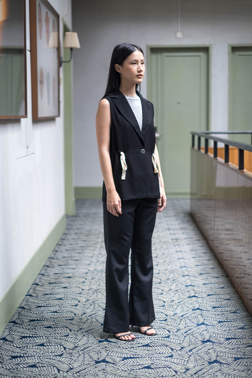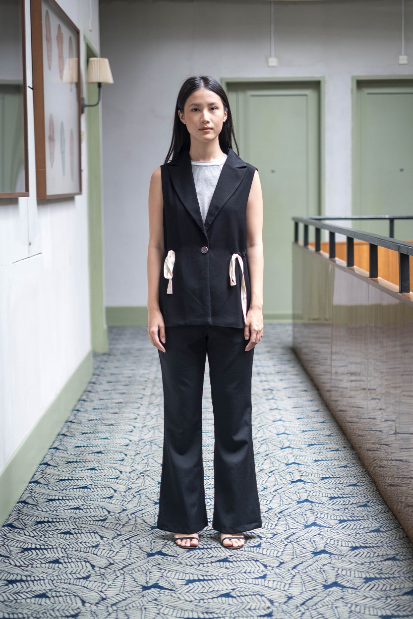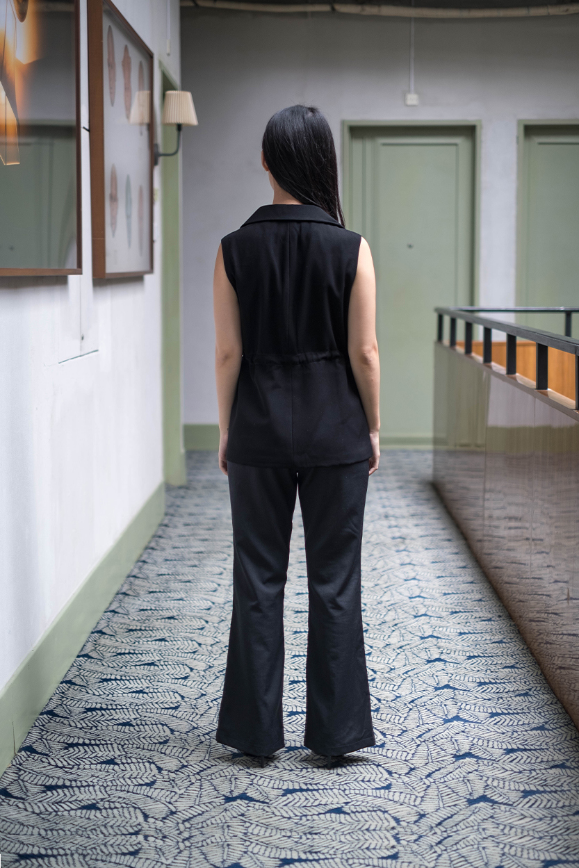 Material: Gabardine Collared waistcoatButton fastening at the front and drawstring details