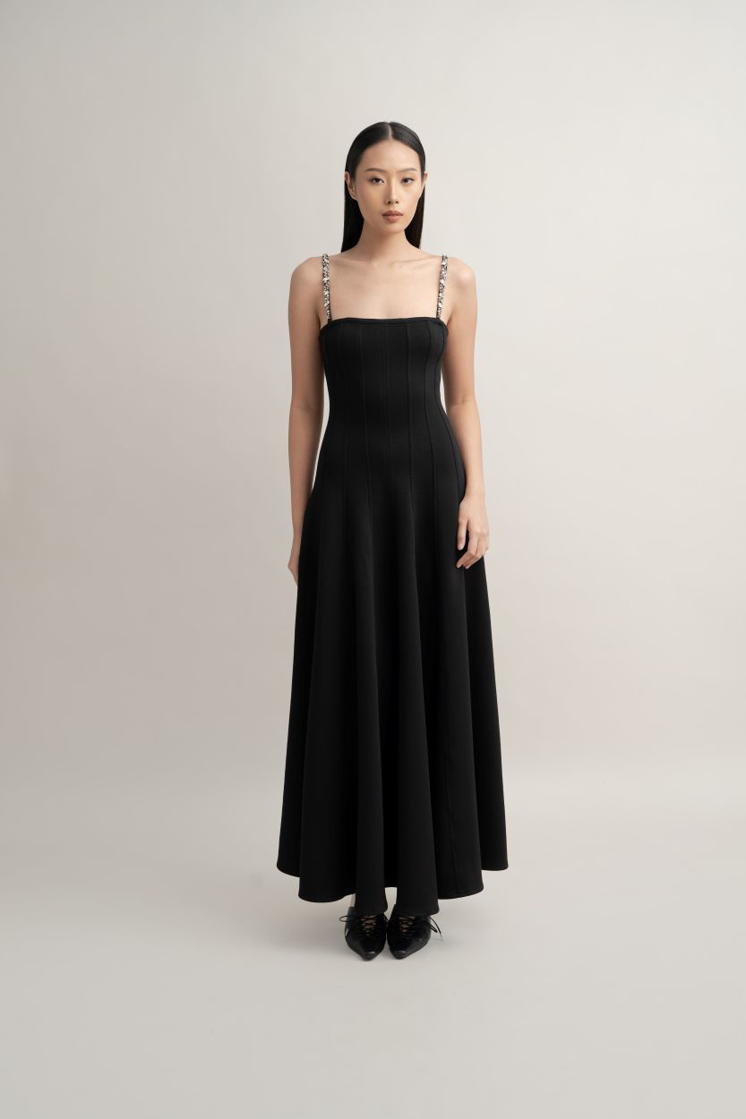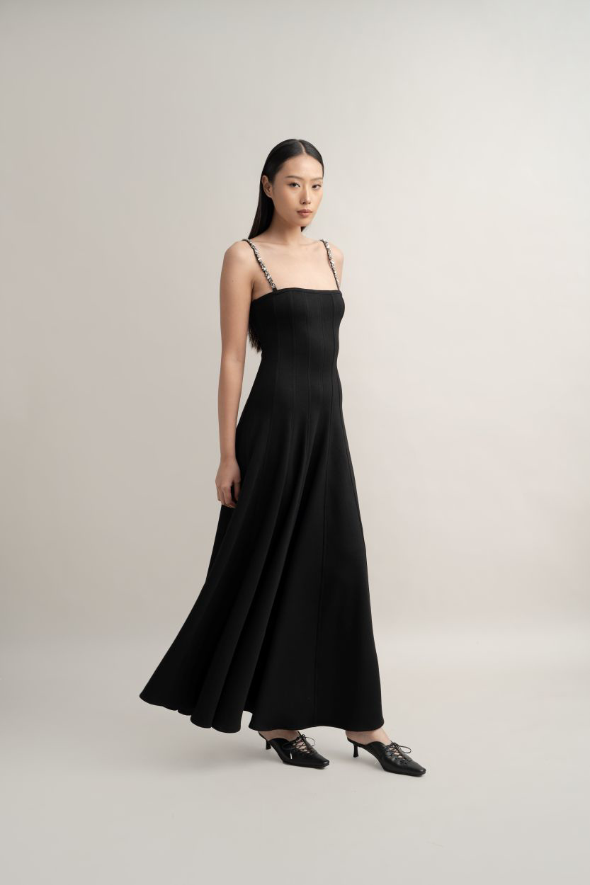 Material: Modura Active Cotton Strapless midi dress with back zipper that is designed with a structured silhouette can be paired with our selection of optional straps