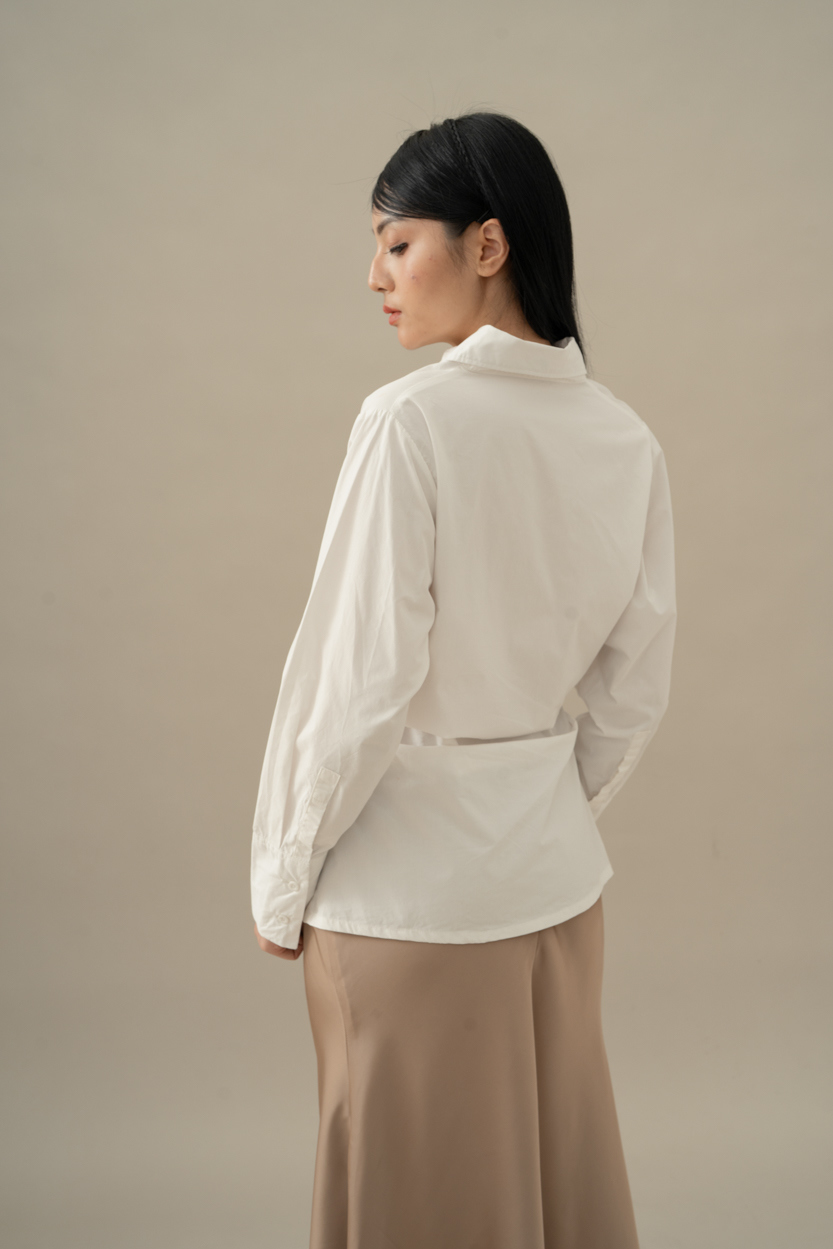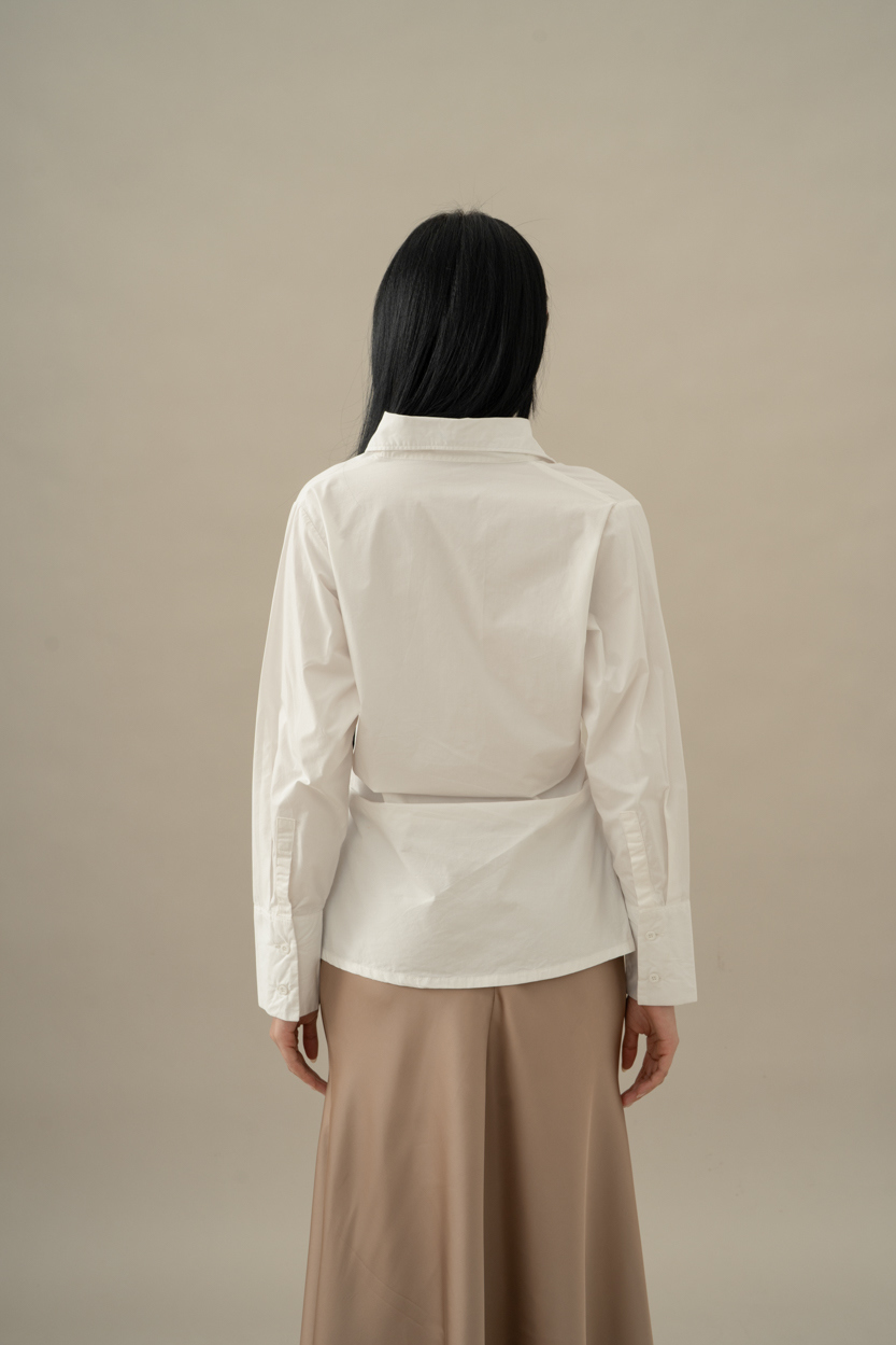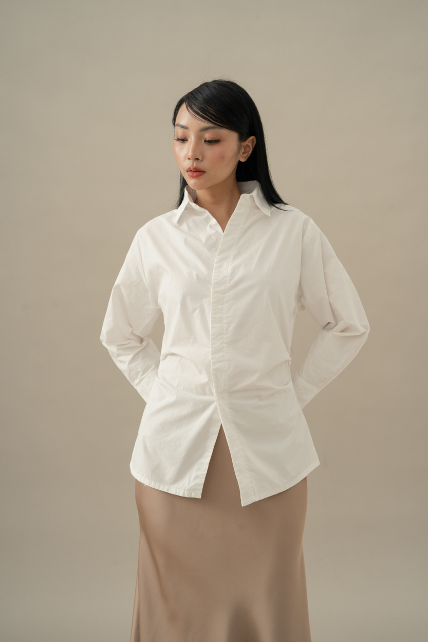Material: Cotton Cashmere A shirt with long sleeves, classic collar and buttoned cuffs,featuring draped detail on the side creates a flattering silhouette,comes in stripe and white