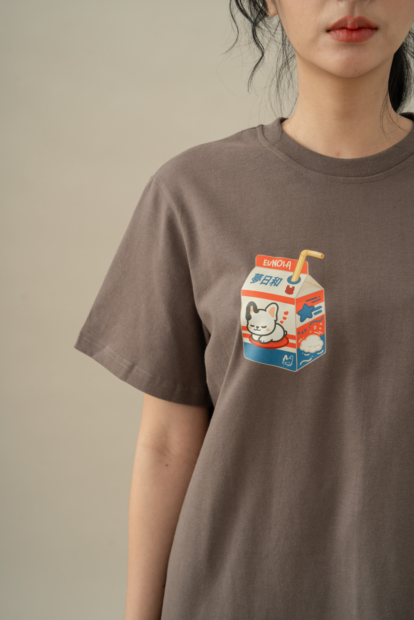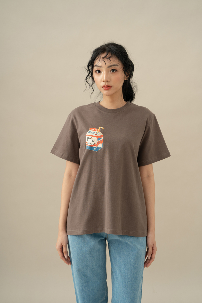 Material: Cotton Air Oversized round neck latte t-shirtfeaturing print of nimbus milk box in front andembroidery of nimbus head at the back