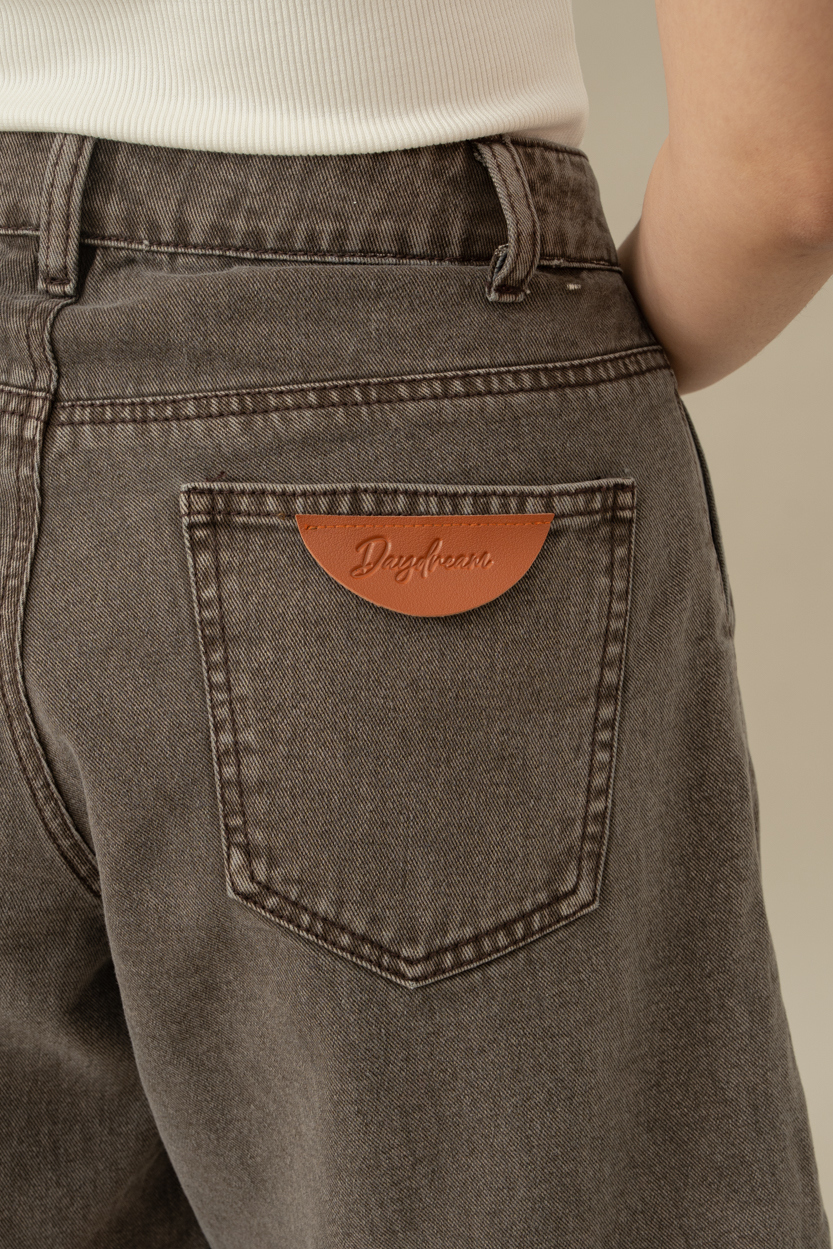 Material: Jeans High waist bermuda shorts with belt loops and front zip fly,the back pocket is accented with a faux leather "dreamday" patch